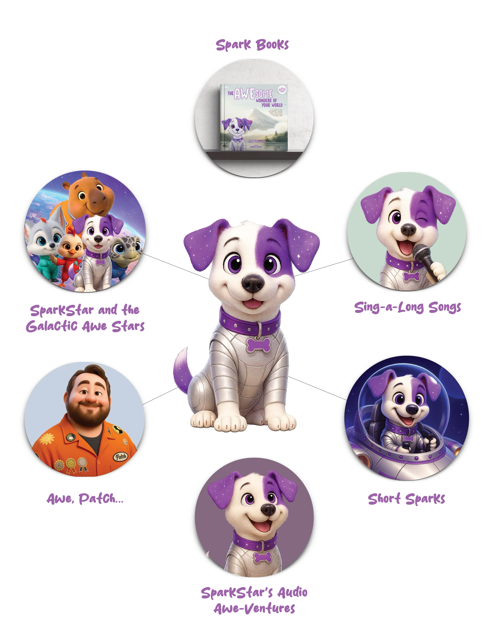 SparkStar is the spark that turns awe from an abstract idea into lived experience. As both a character and a storyworld, the SparkStar IP is designed to capture attention through humor, adventure, and emotional resonance—then redirect that attention outward into the real world.